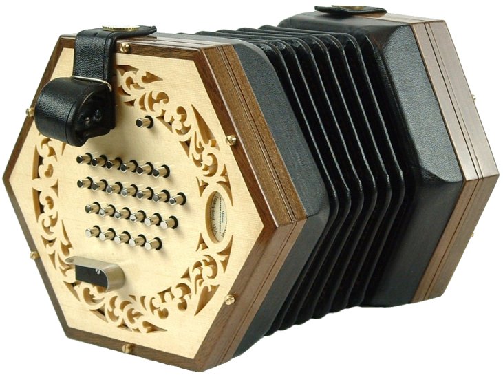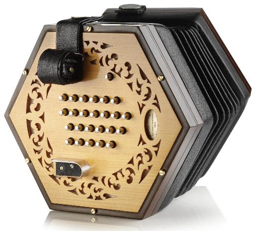 The W-E2 model is based on the early Wheatstone concertinas from the 1850s. It